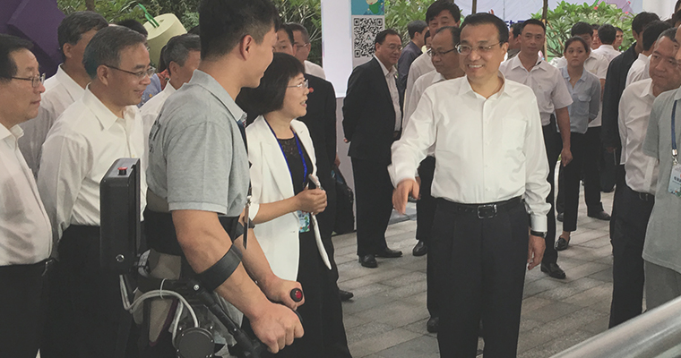 李克强总理非常关心人工智能如何造福弱势群体,展会上与展示人员亲切握手,听取了项目负责人帅总的介绍,并给予了高度评价!